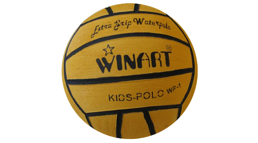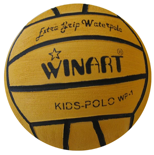 Топка за водна топка размер 1 (обиколка: 34–36 см, тегло: 200–220 г) за деца. Материал: дълготрайна гума с релефна, набраздена повърхност. Предлага се в жълт цвят.
