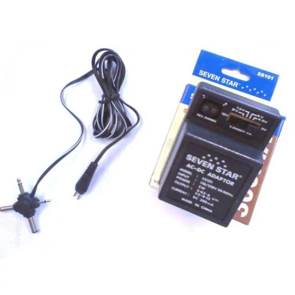 Този адаптер преобразува мрежово напрежение 110-220 V в постоянен ток 3-4,5-6-7,5-9-12 V. Внимание: превключвателят, намиращ се в долната част на адаптера, трябва да бъде превключен в диапазона 220 V! При използване на адаптера в мрежа в диапазона 110 V той ще се повреди!