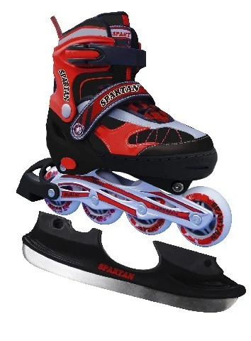 Кънките/ролерите 2 в 1 на марката Spartan (сменяеми – колелата могат да се заменят с нож, и обратно). Други характеристики: алуминиева шина, лагери ABEC 7, регулируеми в диапазон на размери 34–37. Максимално натоварване: 60 кг.