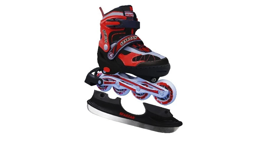 Ролери / кънки за лед 2 в 1 от марката Spartan (сменяеми – колелата могат да се заменят с острие и обратно). Други характеристики: алуминиева шина, лагери ABEC 7, регулируеми в диапазона на размерите 30–33. Максимално допустимо натоварване: 80 кг.