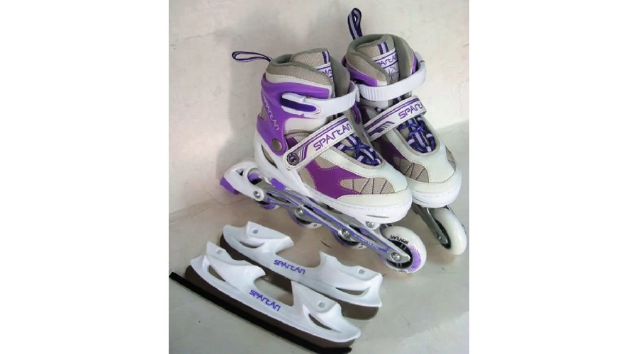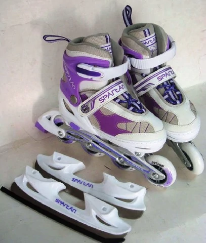 Ролери / кънки на лед 2 в 1 на марката Spartan (колелата могат да се сменят с нож, и обратно). Други характеристики: алуминиева шина, лагери ABEC 7, регулируеми в диапазона на размери 30-33. Максимално натоварване: 60 кг.
