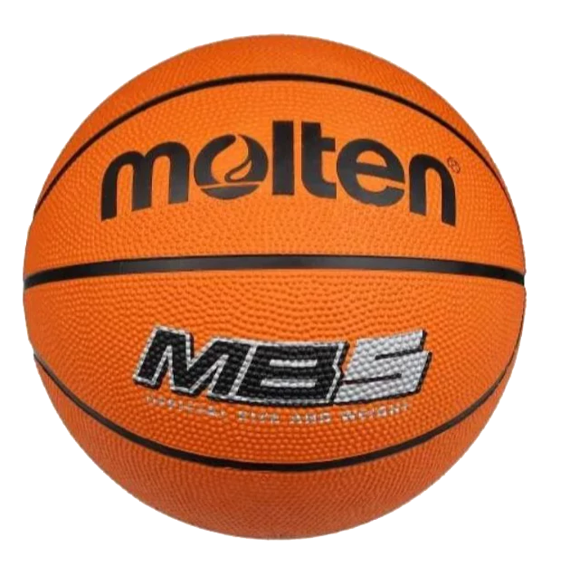 Гумена баскетболна топка Molten MB5 Trainer, идеална за училищна употреба. Подходяща е както за употреба на открито, така и в зала, 12-панелна баскетболна топка размер 5, която благодарение на издръжливия си материал запазва еластичността си дори при студено време.