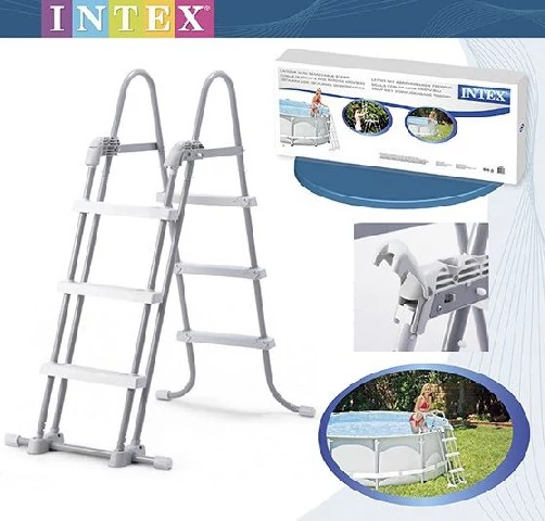 Предпазна стълба с подвижна стъпална секция. Бърз и лесен монтаж. За басейни с височина 91–107 см. 3-стъпална (ширина на стъпалата: 30 см, разстояние между стъпалата: 30 см), здрава конструкция, без горна площадка. Размер на опаковката: 115×48x10 см, тегло: 10,8 кг.