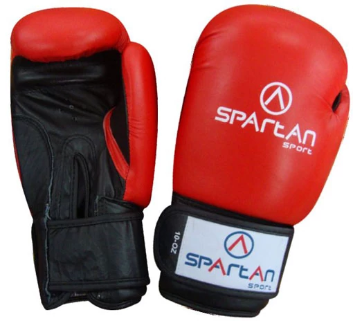 Кожени боксови ръкавици, с фиксиране с велкро. В размер 10 и в червен цвят. Боксовите ръкавици е препоръчително винаги да се използват с бинтове, така ръкавицата ще има по-дълъг живот и ще бъде по-хигиенична. Не са предназначени за удари по боксова круша (за тази цел се използват т.нар. ръкавици за круша)! Тъй като от боксовата круша вътрешният материал на боксовата ръкавица се деформира и сплесква, което прави боксовата ръкавица опасна за използване.