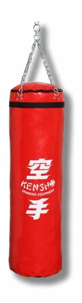 Боксовите чували Kensho отговарят както на изискванията за професионални тренировки, така и за любителски. Изработени са от висококачествена и високоплътна пластмасова брезентова материя (винил), ръчно напълнени с памучни и полиестерни материали, което осигурява идеална твърдост. Цената включва и окачване с верига. Размер: 120×35 см, тегло приблизително 35–40 кг. Веригата и карабинерът са включени. В червен цвят.
