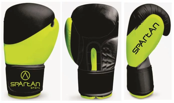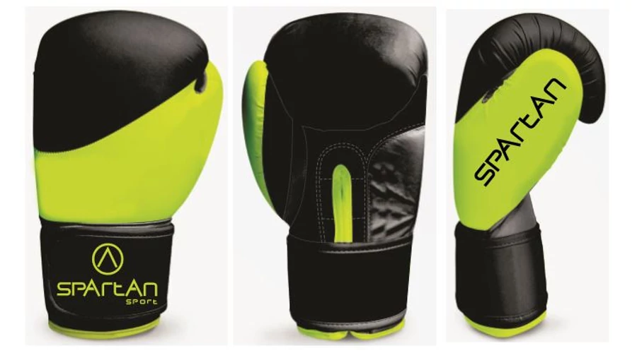 Боксови ръкавици от синтетична кожа. В черно-неоновожълт цвят, размер 10. Препоръчително е боксовите ръкавици винаги да се използват с бинтове, така ръкавиците ще имат по-дълъг живот и ще бъдат по-хигиенични. Не са предназначени за работа на боксов чувал (за тази цел се използват т.нар. ръкавици за чувал)! Вътрешният материал на боксовите ръкавици се деформира и сплесква от боксовия чувал, което ги прави опасни за употреба.