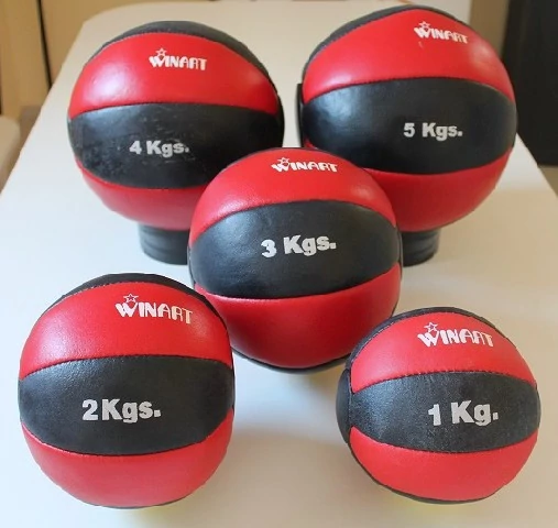 Висококачествена кожена медицинска топка. Тегло: 5 кг. Обиколка: 82 см, диаметър: 26 см. Отлична тренировъчна топка за всички възрастови групи. Препоръчва се за училища, фитнес зали и за домашна употреба за увеличаване на мускулатурата, както и като спортен уред за укрепване при лечебна гимнастика. Многофункционално тренировъчно оборудване, което развива нашата моторика и издръжливост.