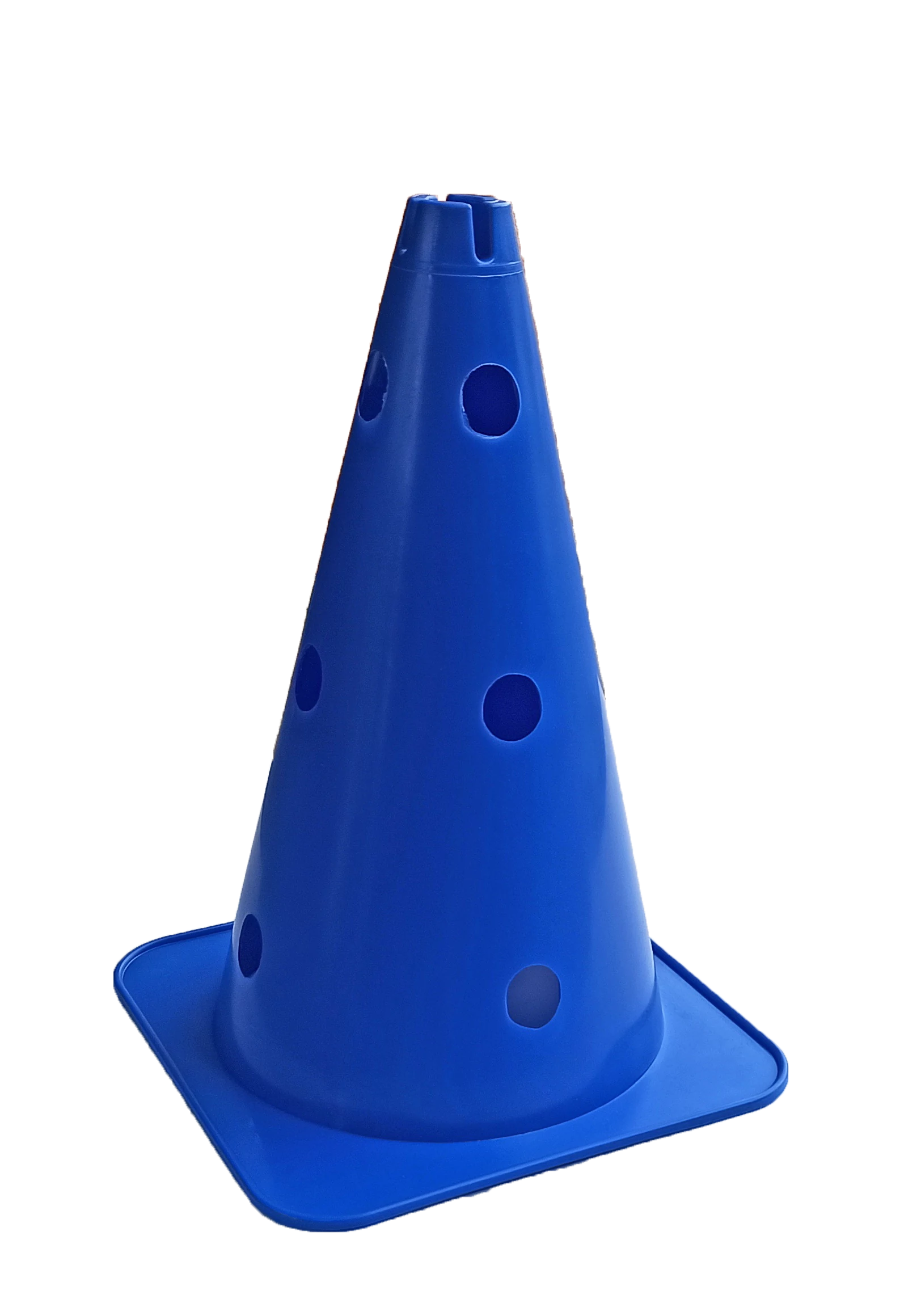Конусът има изключително широко приложение, тъй като може да се използва както за игри с топка, така и за скейтборд и тротинетка. Благодарение на материала си се почиства лесно, изработен е от издръжлива пластмаса. Благодарение на размера и цвета си се вижда добре и отдалеч. Препоръчваме го за спортни клубове, училища, частни лица, за индивидуални тренировки. Може да се използва за тренировки на открито или на закрито, самостоятелно или заедно с други аксесоари (допълнителни конуси, тактически пръти, плоски обръчи, тактически щипки и др.). Изработен е от качествена пластмаса, издръжлив. Височина: 38 см, широка основа (26×26 см), с 4x3 бр. отвора. Цената е за 1 бр. конус! В син цвят.