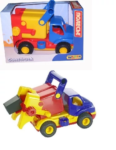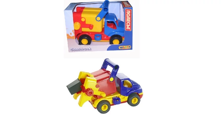 Двуосен сметосъбиращ камион с подвижна накланяща се част, изработен от здравa пластмаса, с истински гумени колела. Накланящата се част може да се наклони чрез изваждане на щифт, а след връщане в изходно положение може да се фиксира. Включена е малка пластмасова кофа за смет. Размер на опаковката: 295×165×200 мм. Препоръчва се за деца над 2 години! Възможни са цветови разлики. Цената е за 1 бр. WADER качество!