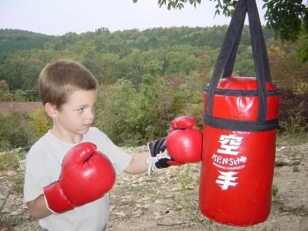 Боксов комплект, специално препоръчан за деца, който съдържа пакет от 1 бр. усилен боксов чувал от изкуствена кожа с размер 40×20 см и тегло около 3,8 кг, както и детски боксови ръкавици с различен дизайн (6/8/10 унции).