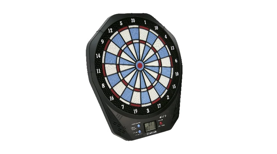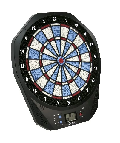 Електронна игра с дартс за 8 играчи за окачване на стена, с 16 различни предварително програмирани игри и техните вариации. Работи с 4 бр. батерии тип AA (не са включени в комплекта).