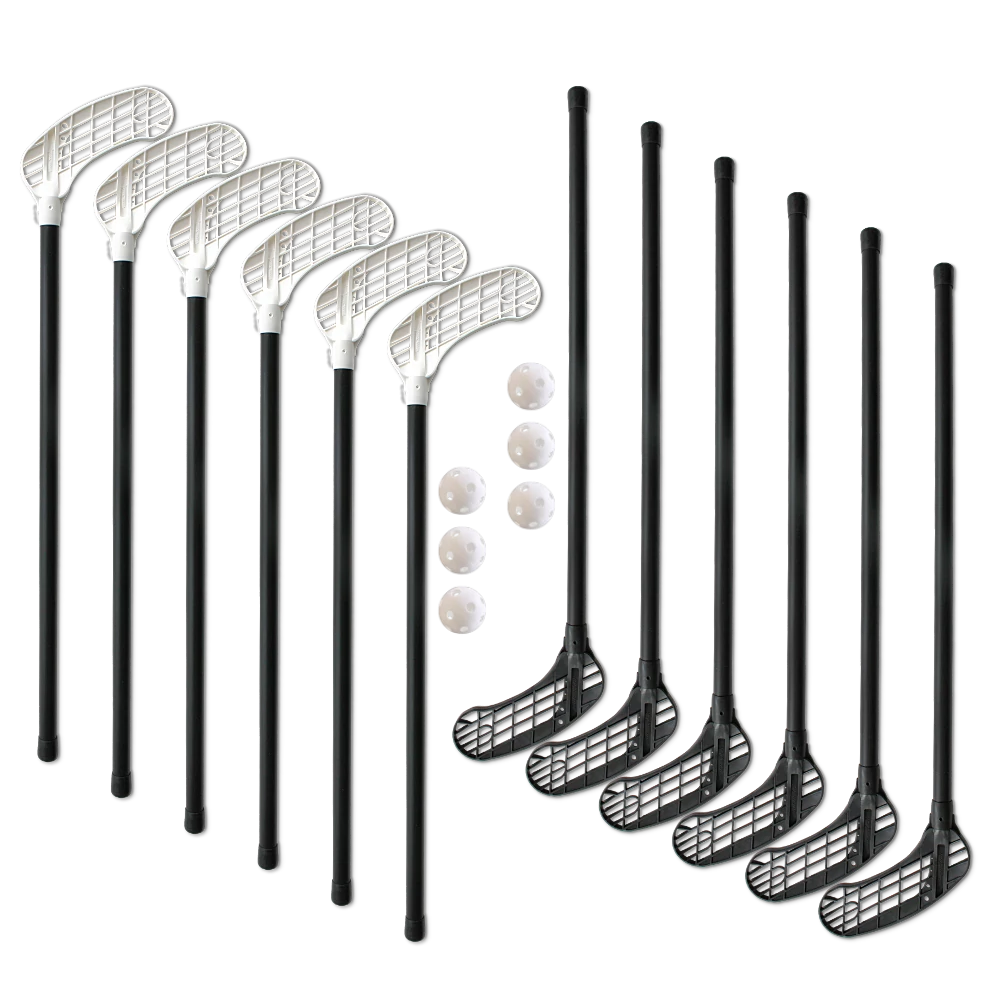 Сет за флорбол с 95 см пластмасова дръжка и подсилени глави. Общата дължина на стика е 106 см. Подходящ е и за училищна употреба.