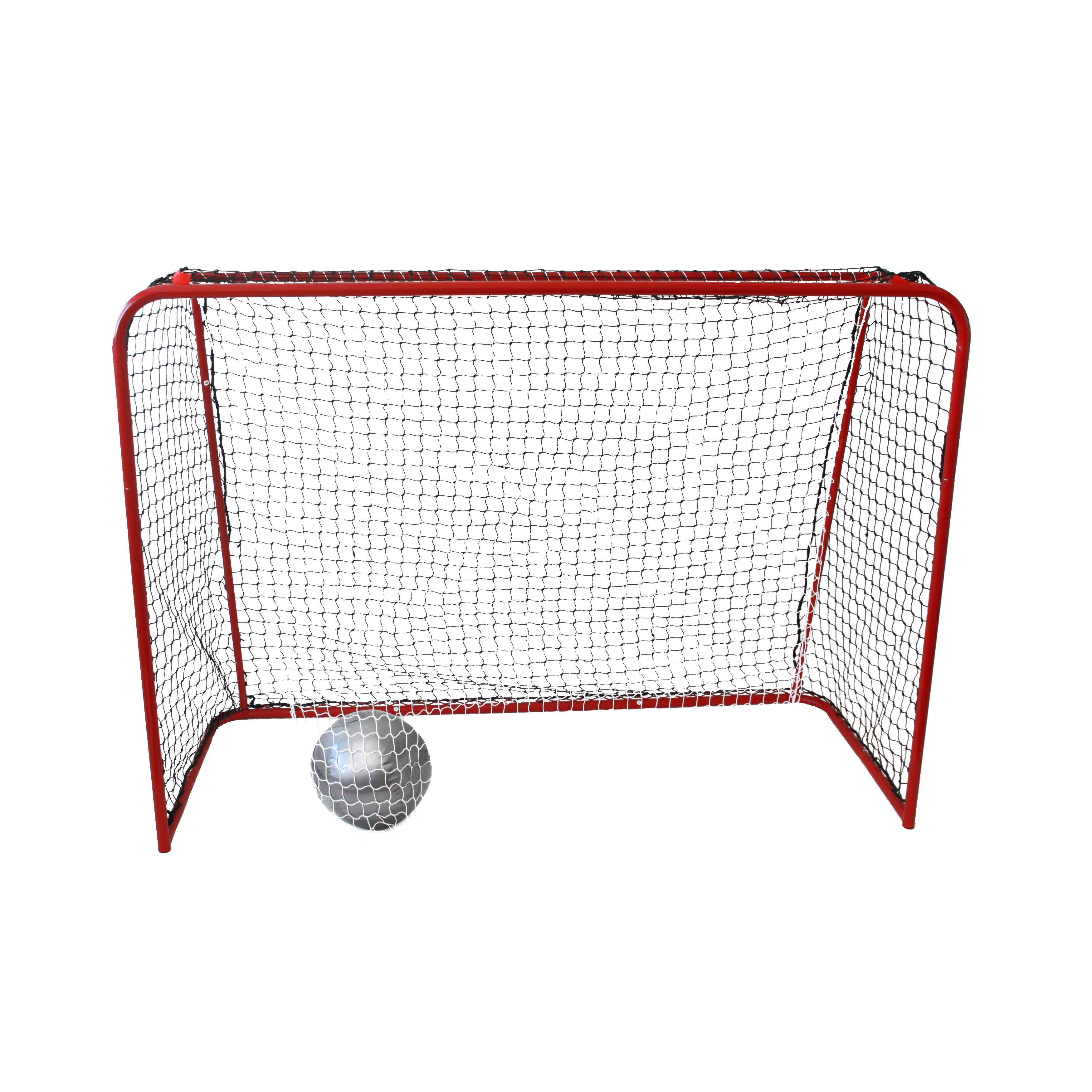 Червена, 160x115x65 cm, флоорболна врата с метална рамка, с мрежа, с конструкция с укрепване на задната мрежа. Теглото на вратата е 6 kg.