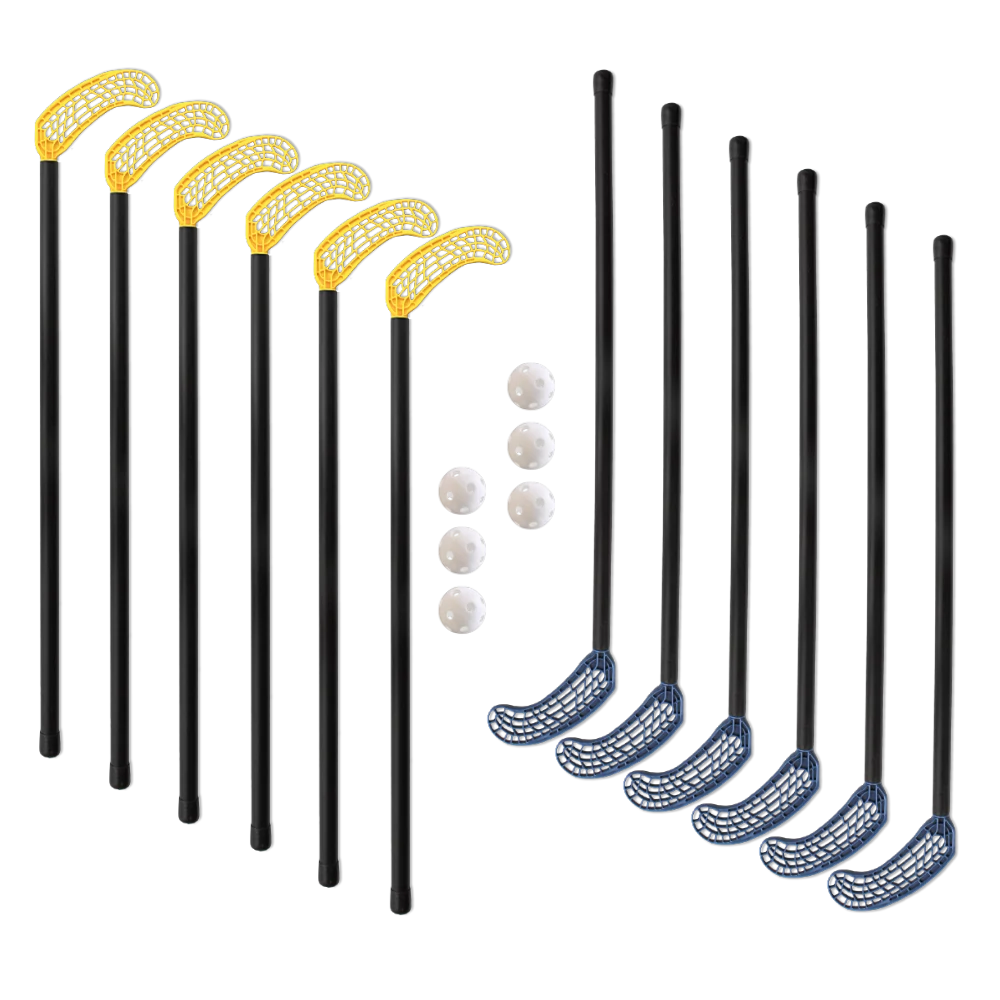 Пълният комплект за 2 отбора съдържа 6+6 броя стикове (в жълт и син цвят), както и 6 броя топки .