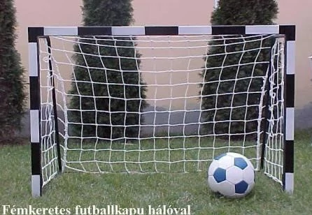 Футболна врата с метална рамка (от затворен профил 4×4 см) с мрежа, със сгъваеми опорни щанги, сгъваема. Размер: 100×60 см. Мрежата е включена. Здрава изработка, препоръчва се и за училищна употреба. Топката, показана на снимката, не е включена!