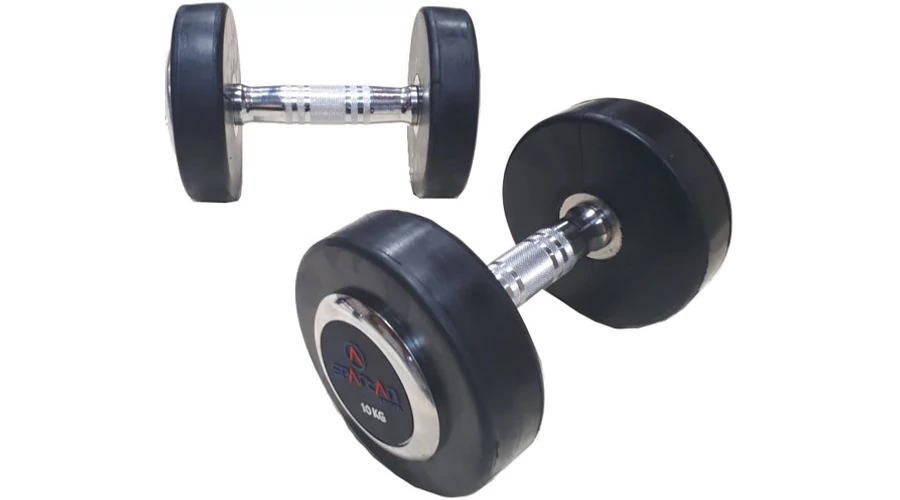 Едноръчен дъмбел с влаго- и потоустойчива ръкохватка с метална част за захват и фиксирани (несваляеми) гумени тежестни дискове. Идеален за упражнения за бицепс и трицепс. Посочената цена е за 1 бр.!
