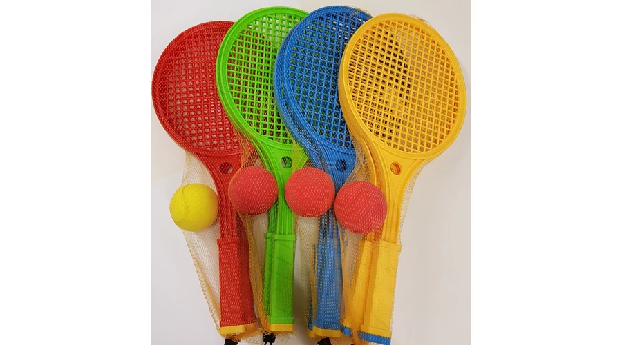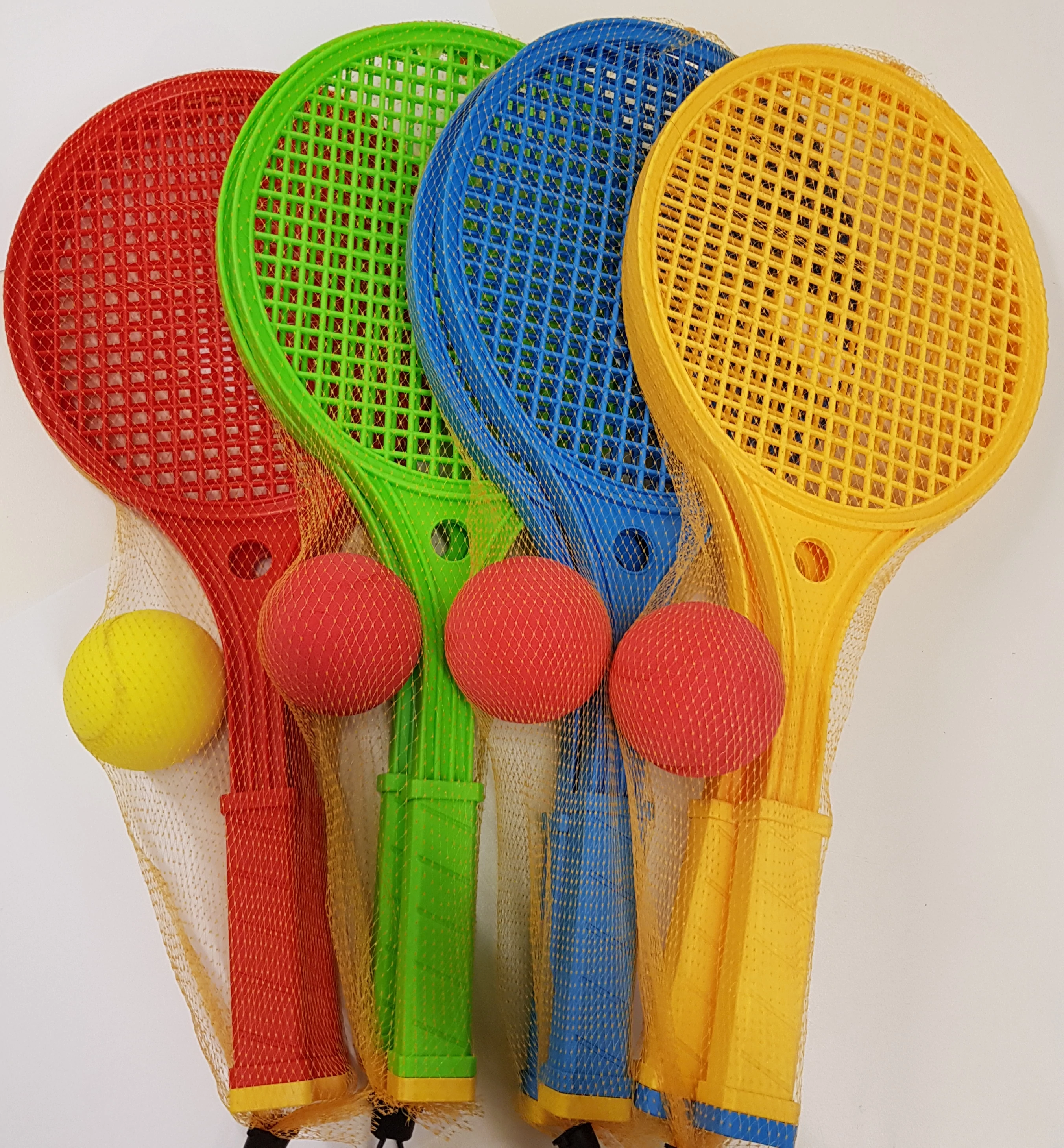 Съдържание: 2 бр. пластмасови ракети 49×22×1.5 см, 1 бр. мекотенис топка.