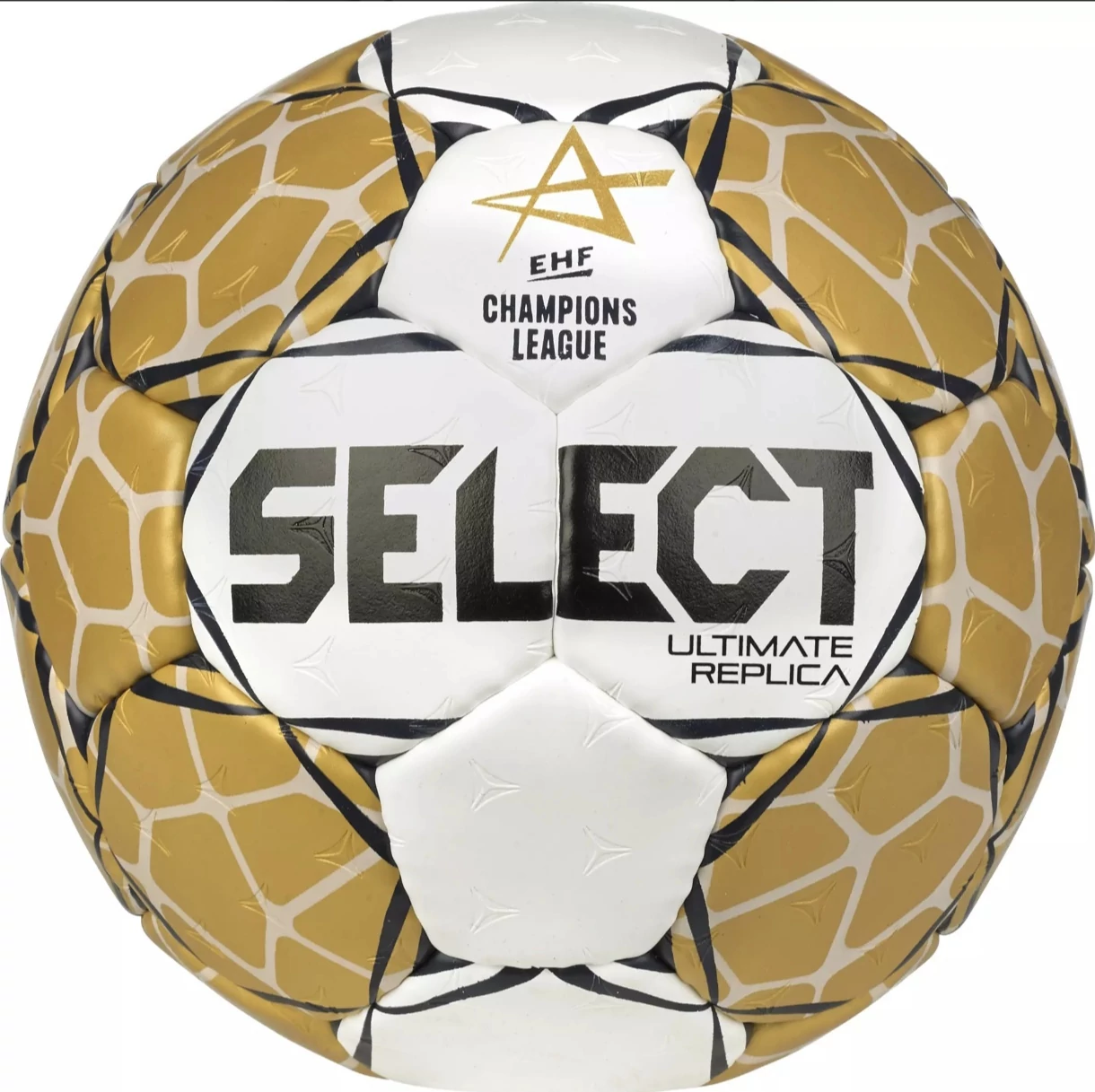 Хандбална топка Select Ultimate EHF Шампионска лига реплика V23 бяло/златно, размер 3