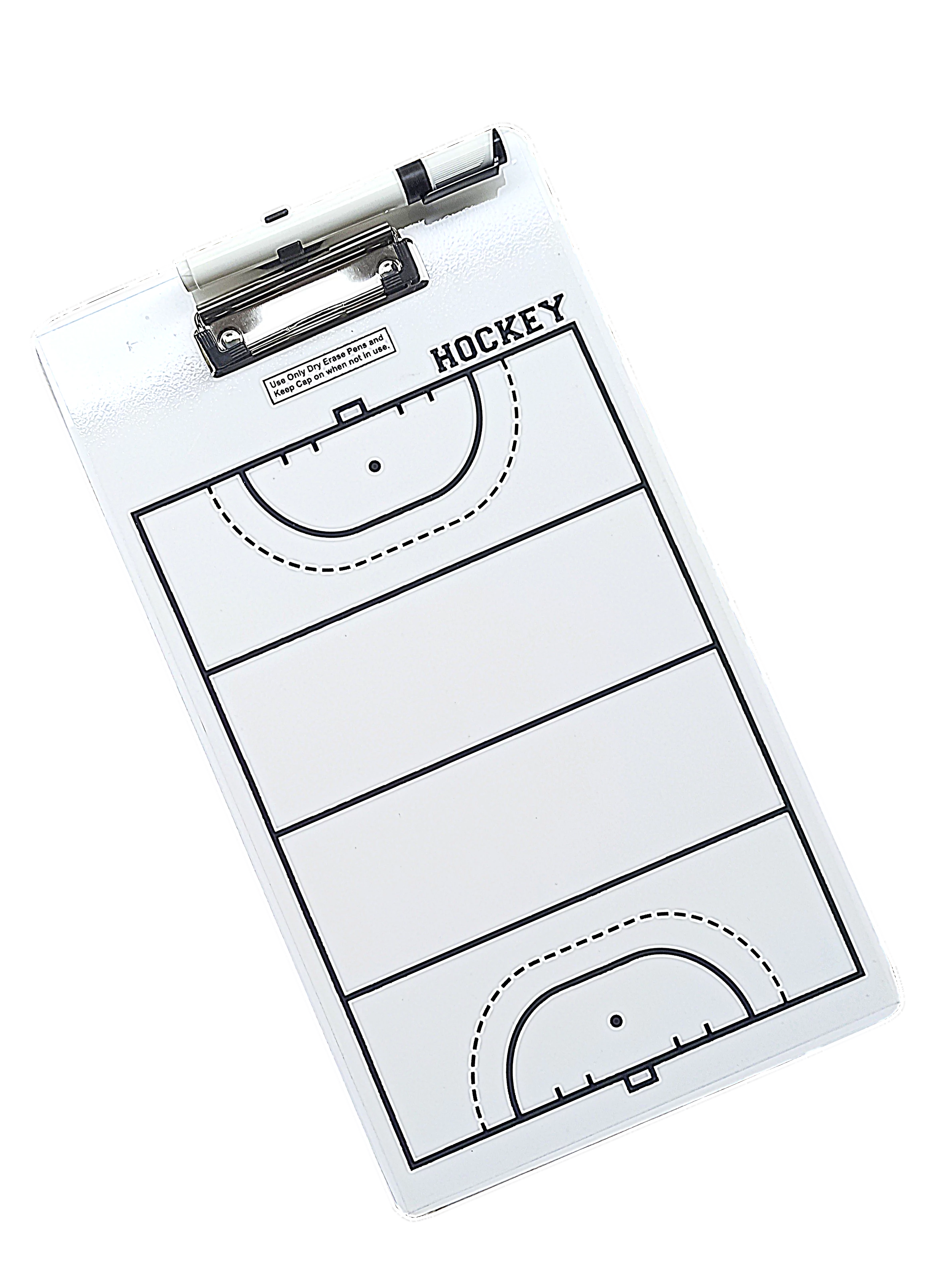 Тактическа дъска за хокей на лед от пластмаса с размер A/4, двустранна, с линии на игрището. Идеално средство за онагледяване. Акрилна плоскост с дебелина 3 мм, с изтриваема повърхност, със здрав клипс за държач на флумастер. Размер: 40×23 см. Флумастерът е включен.