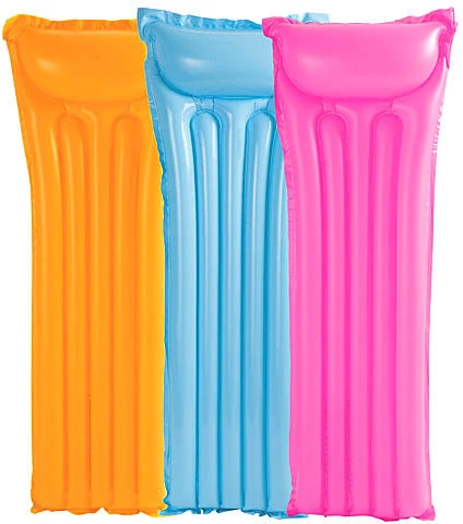 Едноместен, едноцветен матрак с две въздушни камери, подходящ за слънчеви бани или за кратка почивка във водата. Размер: 183×69 cm. В син цвят. Цената е за 1 бр.!