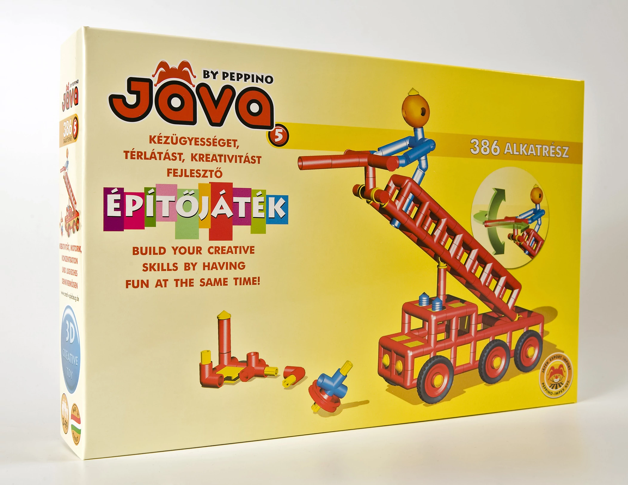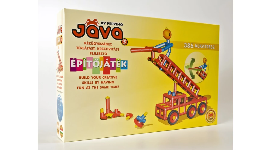 Пластмасова конструктивна играчка за развиване на сръчност, пространствено мислене и креативност. Съдържание на кутията: 386 елемента. Препоръчва се за деца от 3-годишна възраст. Унгарски продукт!