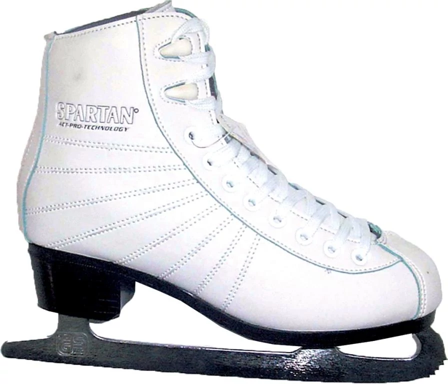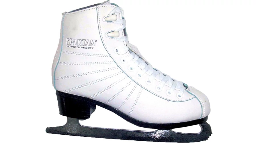 Дамски кънки за фигурно пързаляне, с кожена горна част, с връзки по цялата дължина. В бял цвят.