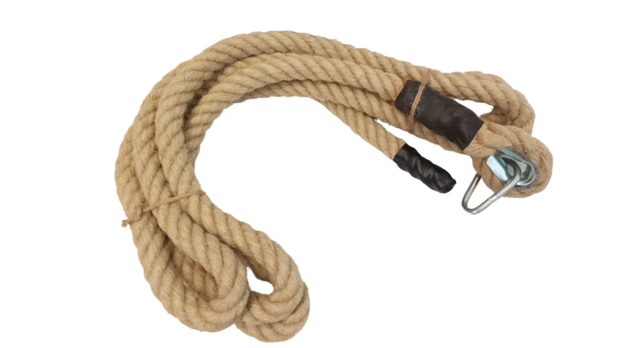 Въже от коноп, с въжен стопер и затворен карабинер. С диаметър 32 мм. Уред за употреба на закрито, за физкултурен салон. Унгарски продукт! Унгарски продукт!