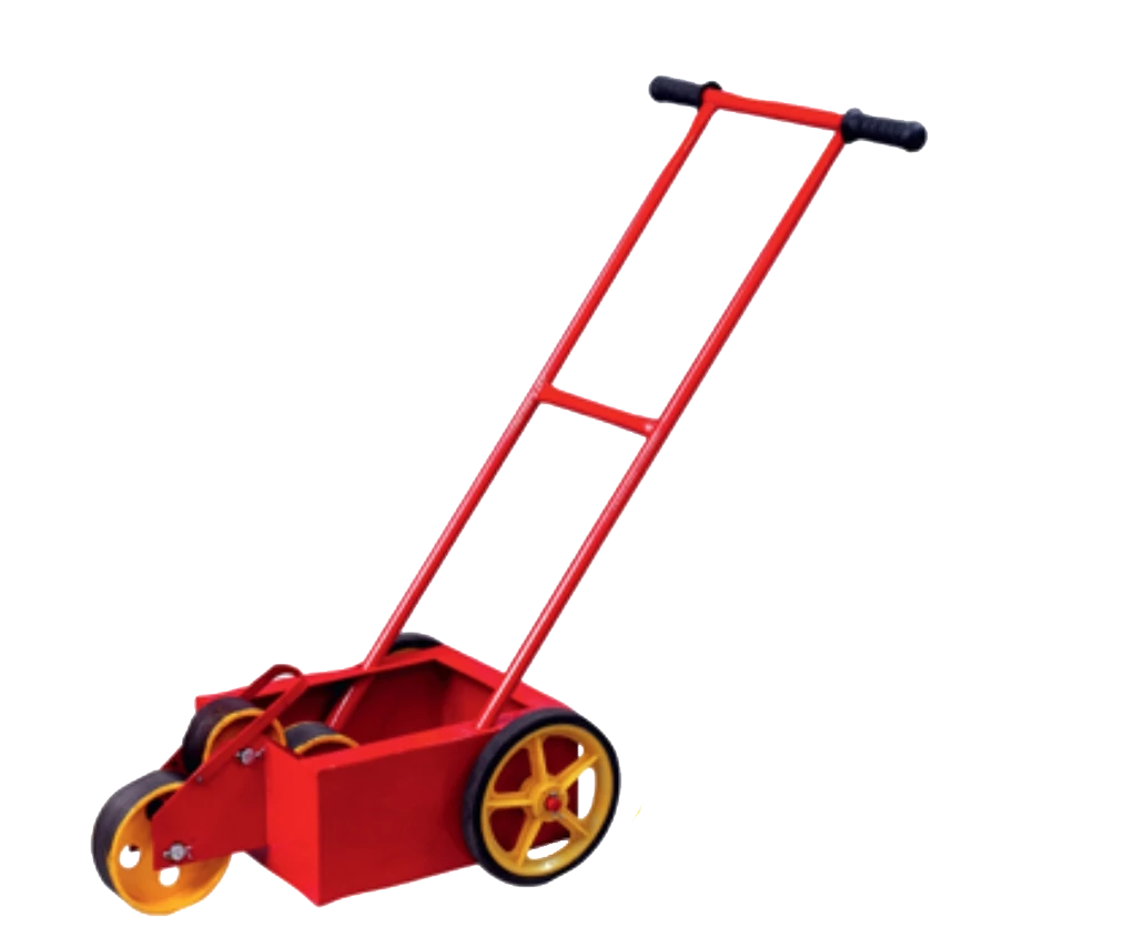 За боядисване на линии на игрища, изготвяне на маркировки. Бърз и маневрен. Размери на резервоара за боя: 26x14x32 cm. Ширина на бояджийския валяк: 70 mm. Възможно е разминаване в цвета!