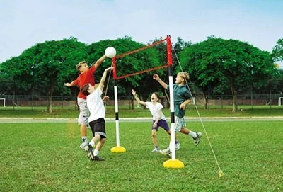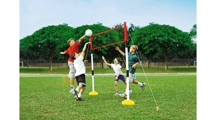 Сглобяема пластмасова стойка за домашна употреба, с 2 нива на височина (за бадминтон, тенис) и 3-метрова PVC мрежа. Размер на мрежата: 300×80 см. Комплектът включва още: 2 бр. бадминтон ракети с метална рамка, 2 бр. пластмасови тенис ракети, 2 бр. тенис топки и 1 бр. перо за бадминтон.