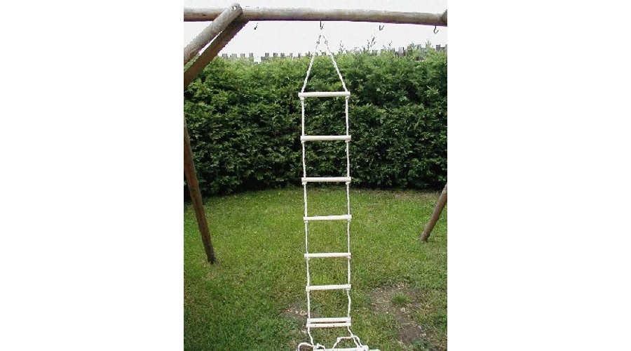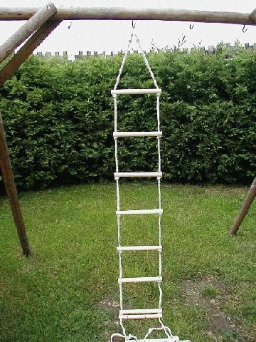 4-метрова въжена стълба с дървени стъпала, с 12 бр. дървени стъпала с дължина 30 см и диаметър 20 мм, с 4,5 м цветно PPtex въже. Товароносимост: 60 кг. Унгарски продукт!
