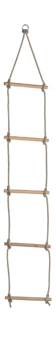 2-метрова дървена стълба с въже, с напречни стъпала с дължина 31 см и дебелина 20 мм, с цветно PPtex въже. Може да се окачи на височина до макс. 2,5 метра! Унгарски продукт!