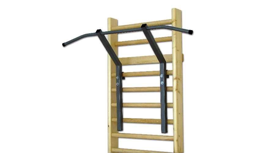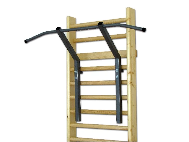 Може да се окачи на шведска стена в стая или фитнес зала, а след отстраняване на окачващата халка може да се монтира и на стена. В сив цвят, със здрава конструкция. Шведската стена, показана на снимката, се продава отделно. Ширина на продукта: 128 см, с изнасяне 30 см. Обща височина: 90 см. Максимална товароносимост: 100 кг.