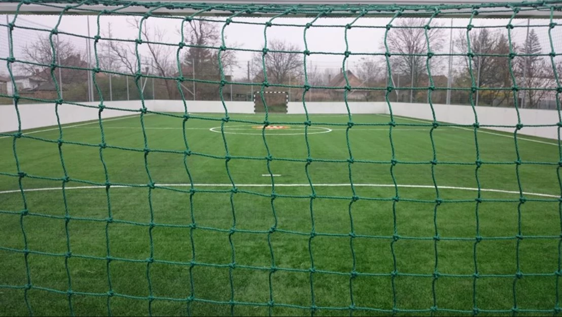 Ръчно връзана мрежа за хандбална врата на MLSZ, зелена, с размер на окото 8x8 cm, тъфирана (ако се скъса една нишка, не започва да се разплита надолу). Размер: 300×200 cm, долна дълбочина: 200 cm, горна дълбочина: 96 cm. Дебелина на материала: 4 mm. Материал: UV-стабилен полипропилен. Цената на продукта е за чифт!