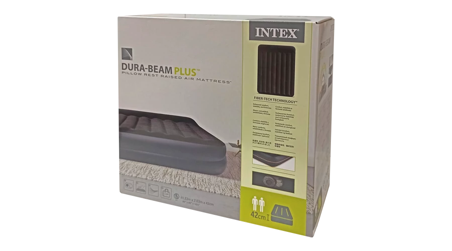 Изключително удобно надуваемо легло, лесно за употреба. Изработено е от 0,52 мм висококачествен, тестван, водоустойчив, мек материал, с надуваема секция за подглавник. Благодарение на вградения компресор леглото се надува за около 4 минути. Работи на 230 V. Размери: 152×203×42 см. Включен е ремонтен пластир при пробиване. Размер на опаковката: 42×39×18 см. Тегло: 6,5 кг. Максимална товароносимост: 272 кг.
