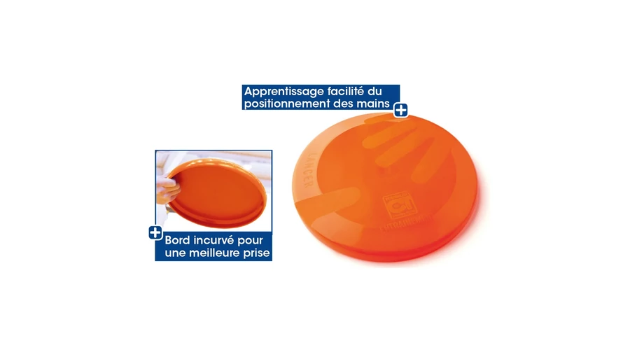 Специален обучителен фризби диск, при който „петнистата“ повърхност обозначава идеалната позиция на ръцете както за хвърляне, така и за улавяне. Ръбът на фризбито е извиван навътре за по-лесно хващане и хвърляне. Тегло: 125 грама, диаметър: 23,5 см, цвят: оранжев.