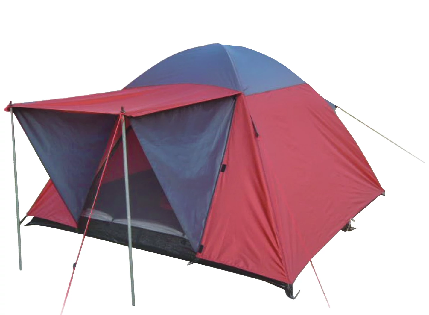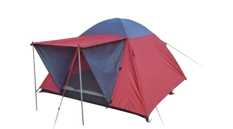 Еднокамерна палатка за 4 души. Размери: 240×210×130 см, тегло приблизително: 5 кг. С преддверие, с фибростъклено подсилена конструкция.