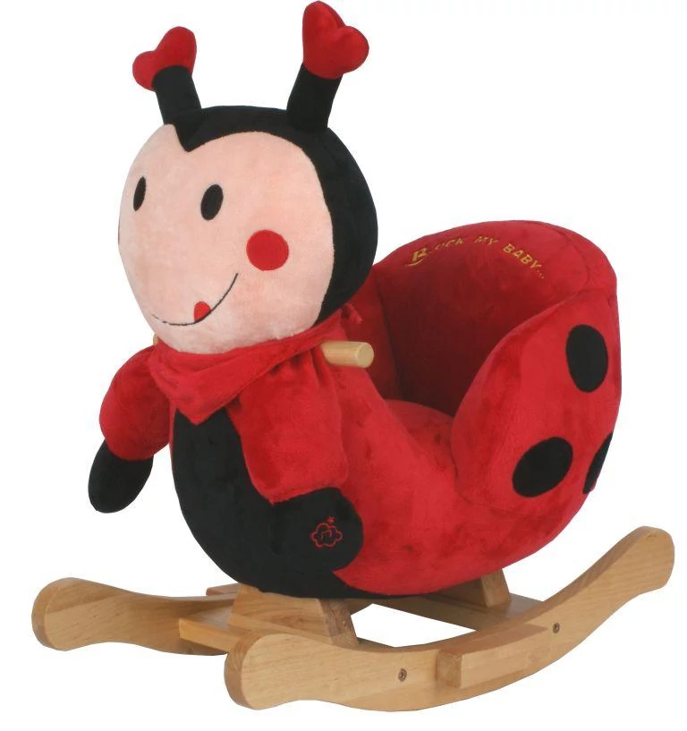 Мека люлееща се калинка от плюш с дървени дръжки за най-малките. При натискане на рогчето на калинката тя изпява детска песничка на английски. Работи с 2 бр. батерии тип AA, които не са включени в комплекта. По време на игра развива чувството за равновесие и координацията на движенията. Препоръчва се за деца над 12 месеца, само под родителски надзор!