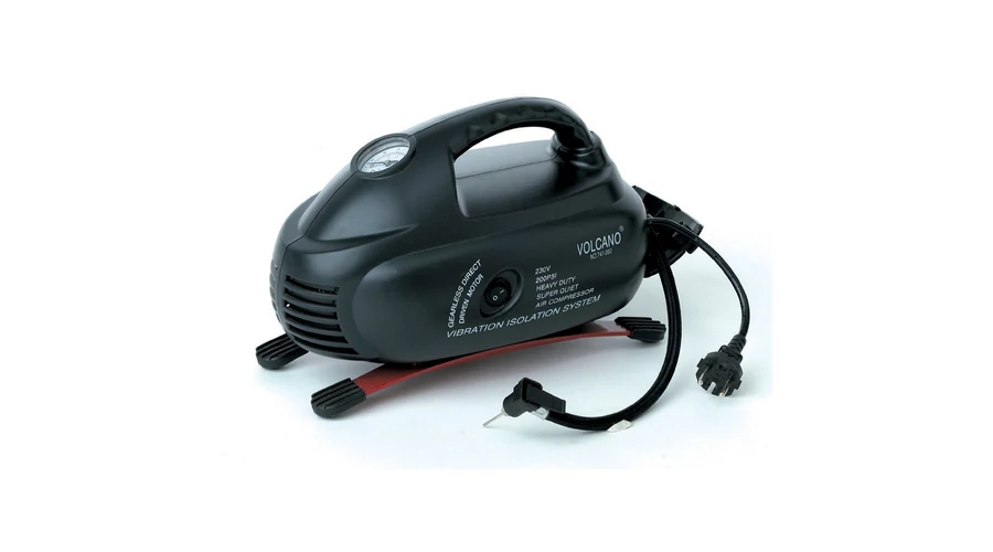 Преносимият ръчен компресор Volcano е отличен избор за всеки, който търси ефективно и лесно за използване решение за различни задачи по напомпване. Компресорът работи от електрическата мрежа, с пластмасов корпус, удароустойчиво изпълнение и благодарение на безмаслената си конструкция не изисква поддръжка. Подходящ е за напомпване на топки, матраци, гуми на превозни средства и включва всички необходими аксесоари. Компактният му размер и ергономичната дръжка улесняват пренасянето и съхранението, а вграденият манометър и функцията за автоматично защитно изключване при свръхналягане осигуряват удобно и безопасно използване.