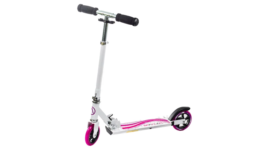 Сгъваема алуминиева рамка, кормило с регулируема височина, 125 мм гумени колела с лагери (ABEC 5). Максимално натоварване: 70 кг. Размери: 650×840 мм.