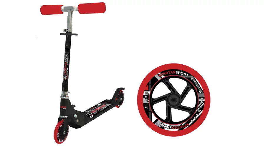 Сгъваема алуминиева рамка, кормило с регулируема височина, 125 мм гумени колела с лагери (ABEC 5). Максимално натоварване: 70 кг. Размери: 650×840 мм.