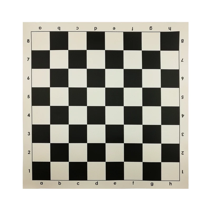Немачкаема шахматна платнена дъска 50×50 см (размер на игралното поле: 45×45 см) на светлобежова основа, с черно-тъмни полета (размер на поле: 55×55 мм).