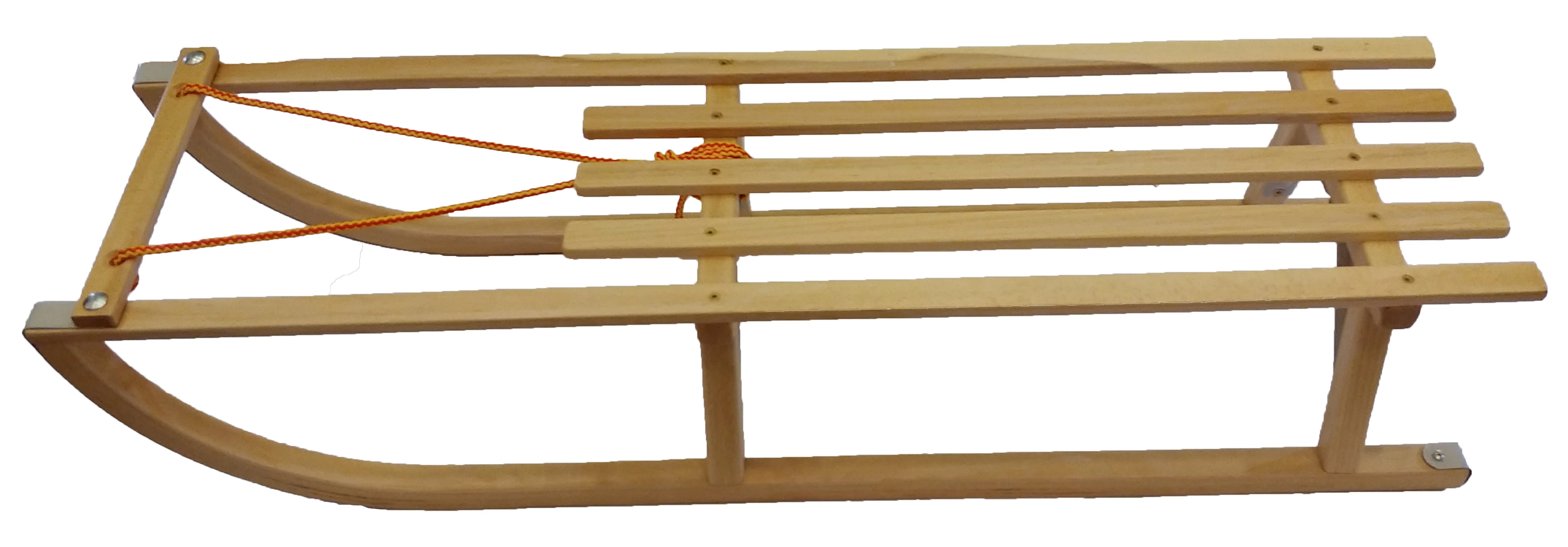 Масивна, класическа дървена шейна за двама (две деца или един възрастен - едно дете), изработена от твърда дървесина, с теглещо въже. Унгарски продукт!