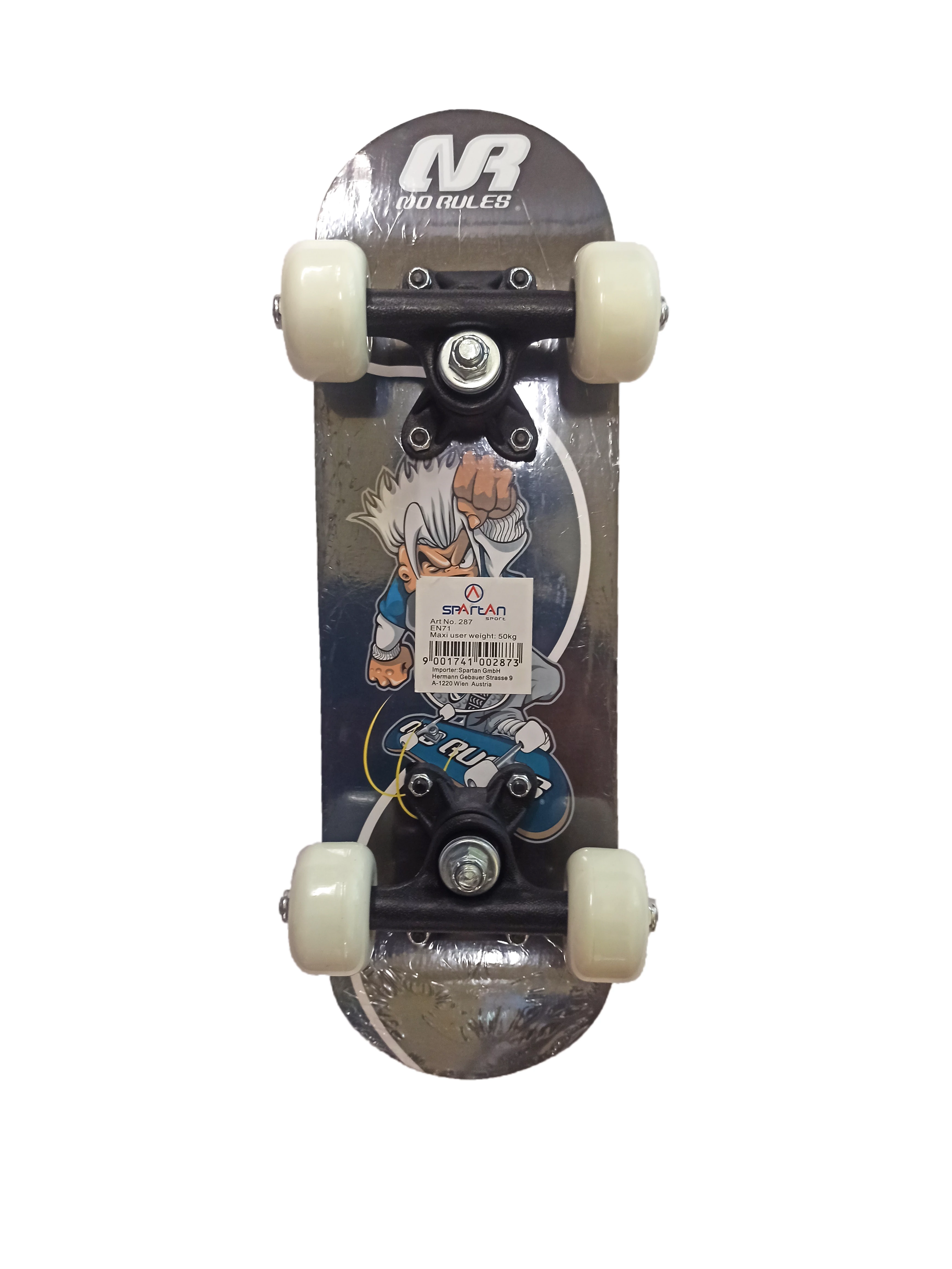 Индонезийска ламинирана дървена дъска 11 мм, мини размер (43×15 см), PVC колела 50×30 мм, стандартни лагери (608z), пластмасово окачване. Подходяща за тегло до 50 кг.