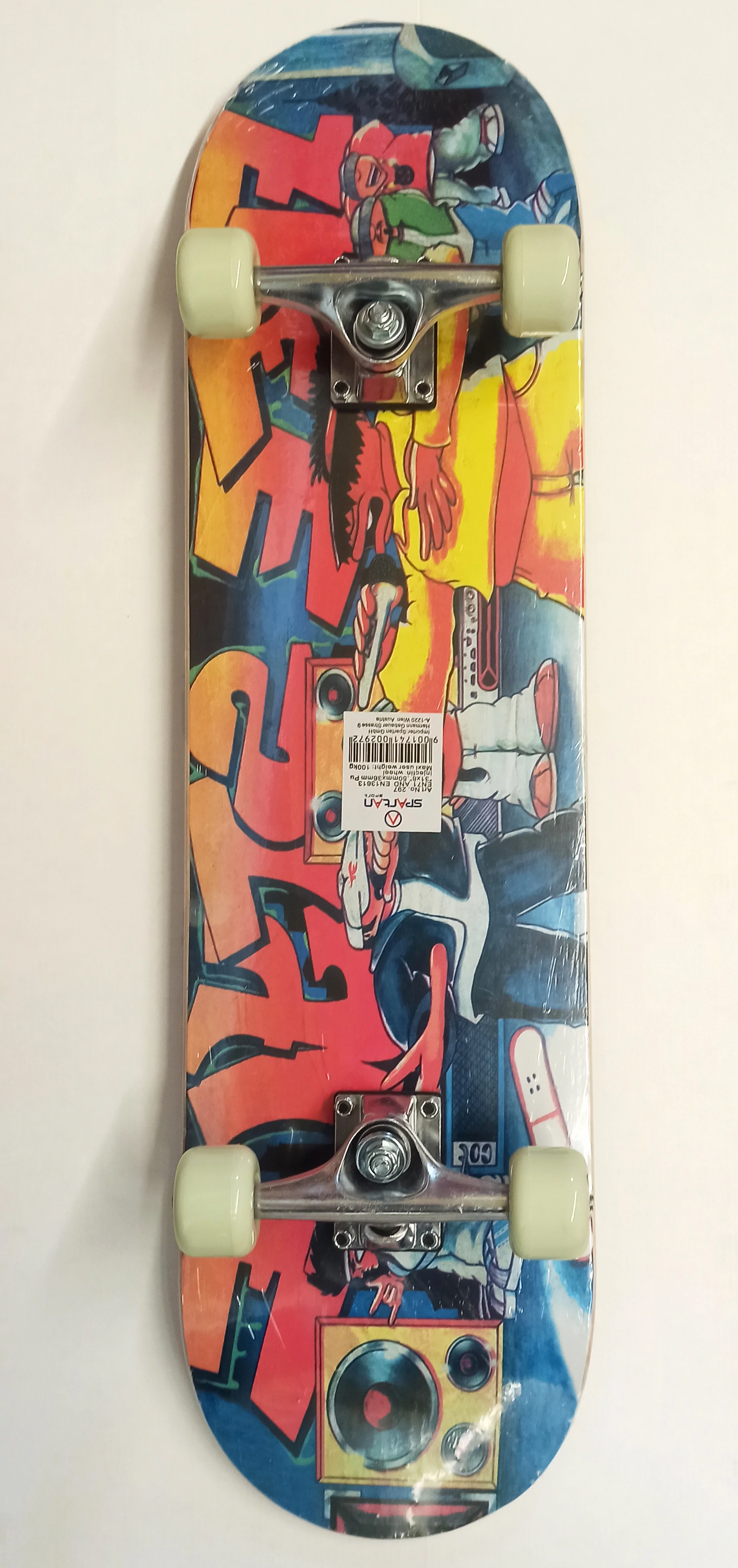 Дървена дъска от китайски клен, 11 мм, с двоен конкав, стандартен размер (79×20 см), 85A PU Injection лагерови (ABEC 3) колела 50×36 мм, подсилена алуминиева ос. Подходяща за телесно тегло до 100 кг.