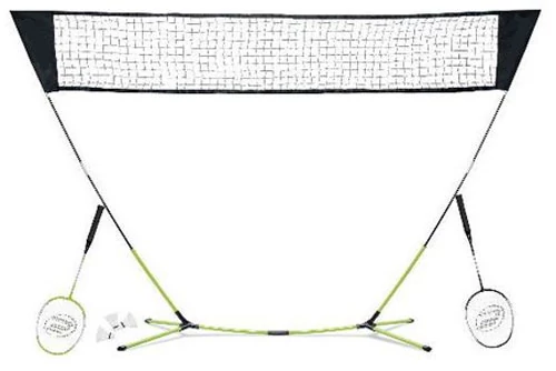Лесно сглобяема стойка от фибростъкло за домашна употреба. Размери: 255 x 35 x 155 cm. Стойката е подходяща както за употреба на открито, така и на закрито. Комплектът включва още: 2 бр. ракети за бадминтон, 3 бр. перца, както и практична торба за съхранение.