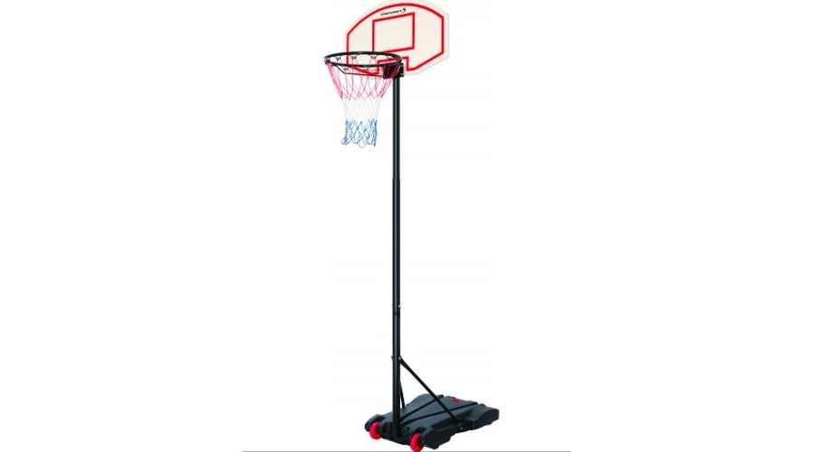 Регулируема височина: 155–205 cm, на колела, 2 бр. червени колела улесняват преместването. Резервоарът може да се пълни с вода или пясък.