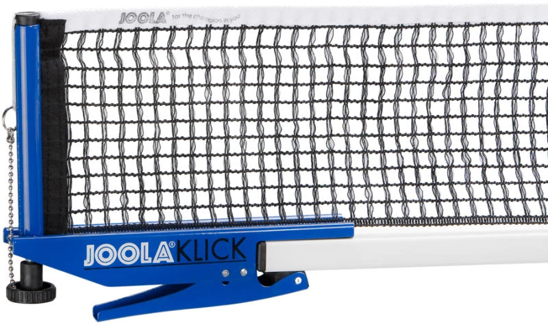 Комплектът JOOLA KLICK / Netz Klick е надеждна мрежа за тенис на маса с метална конструкция, с бързо закрепване със скоба и прецизно регулиране на височината. Монтира се лесно и стои стабилно – идеален за интензивни тренировки и мачове.