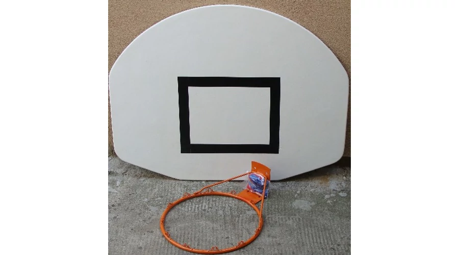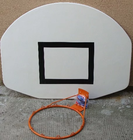 Извит модел, в бял цвят, с покритие от стъклопласт, устойчив на атмосферни влияния. Със стоманен ринг 16 mm и баскетболна мрежа. Отговаря на нормативните изисквания. Подходящ за училищна, клубна и домашна употреба! Унгарски продукт!