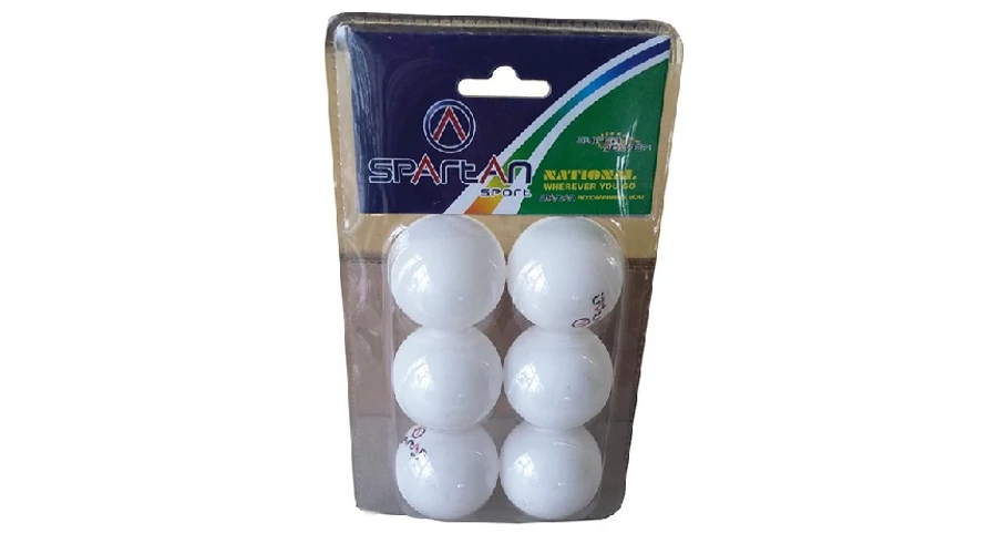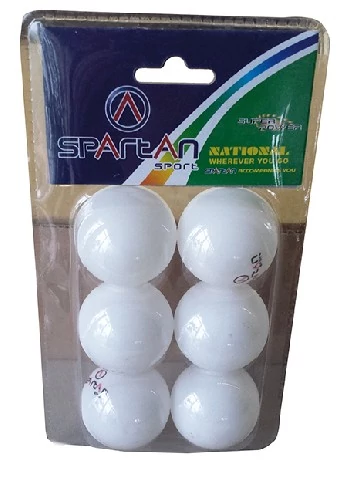 Комплектът съдържа 6 бр. 40 мм бели училищни тренировъчни топчета за тенис на маса марка Spartan.