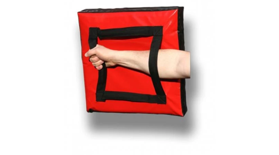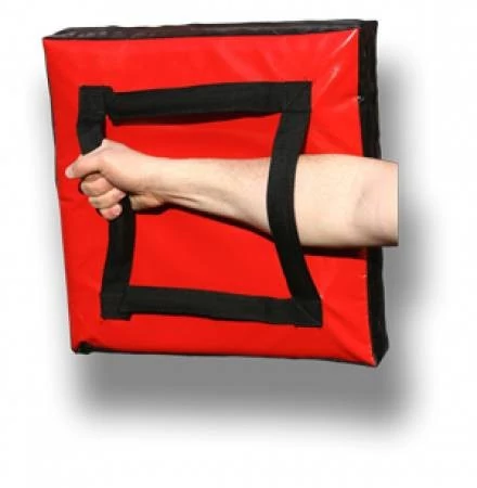 Ударен щит с размер 47×47×10 см, изработен от висококачествена пластмасова брезентова тъкан, пълнен с високо плътен, втвърден (хетерогенен) пенопласт. Отлично подходящ за тренировки по двойки и за упражняване на непрекъснати комбинации от удари и ритници. Сигурното фиксиране на щита се подпомага от трите фиксиращи халки на задната страна. Благодарение на отворите за изпускане на въздух в долната част на щита, въздухът не се „задържа“, като по този начин се осигурява идеално твърда ударна повърхност. Тегло на продукта: 3 кг.